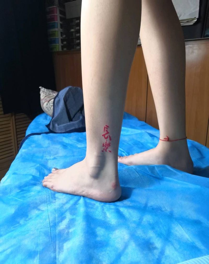知足常乐纹身图片_腿部纹身图案