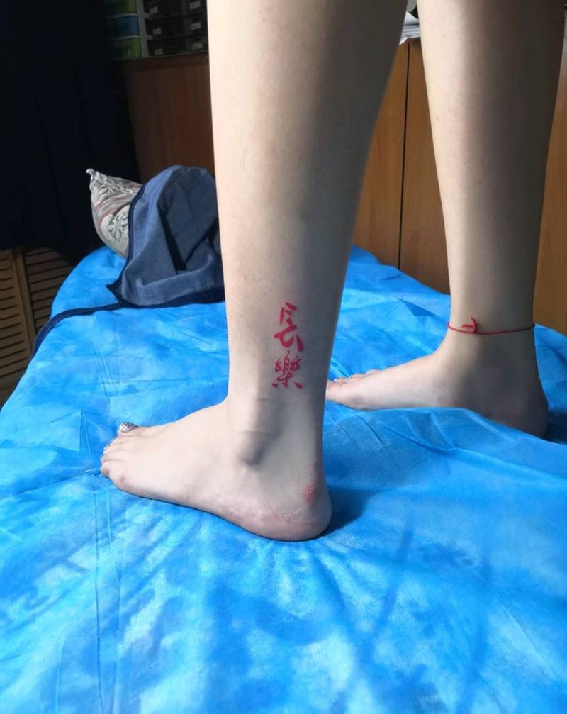 知足常乐纹身图片_腿部纹身图案