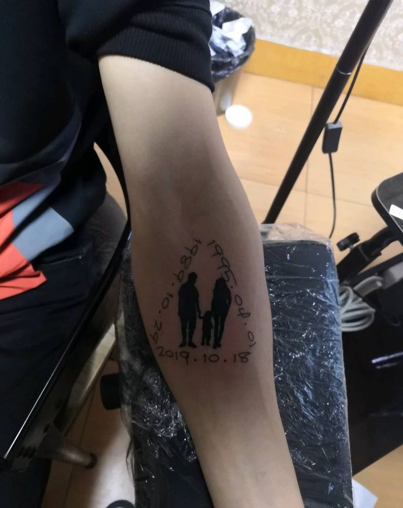 • T家庭图,一家四口生日纪念!纹身图片_手臂纹身图案