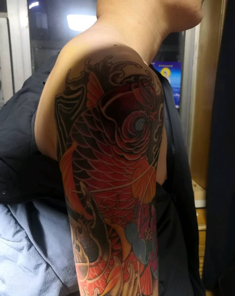大臂鲤鱼纹身图片_手臂纹身图案