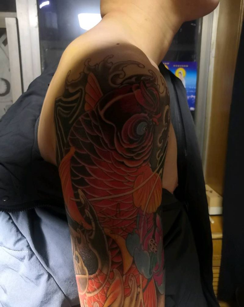 当前位置: 首页 >吉林省松原市纹身店-松原市WJ老兵刺青纹身图案>大臂鲤鱼纹身图片_手臂纹身图案