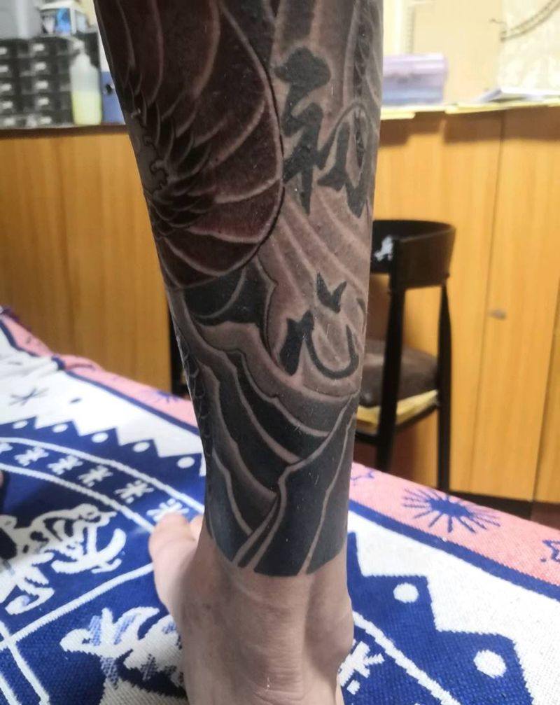 • T网红王老大花腿龙纹身图片_腿部新传统纹身图案