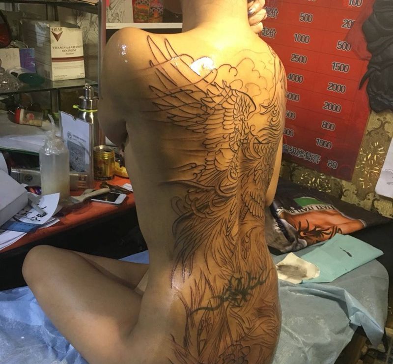 当前位置: 首页 >吉林省吉林市纹身店-纹绣堂刺青纹身图案>凤凰纹身图片_成品背部传统动物纹身图案