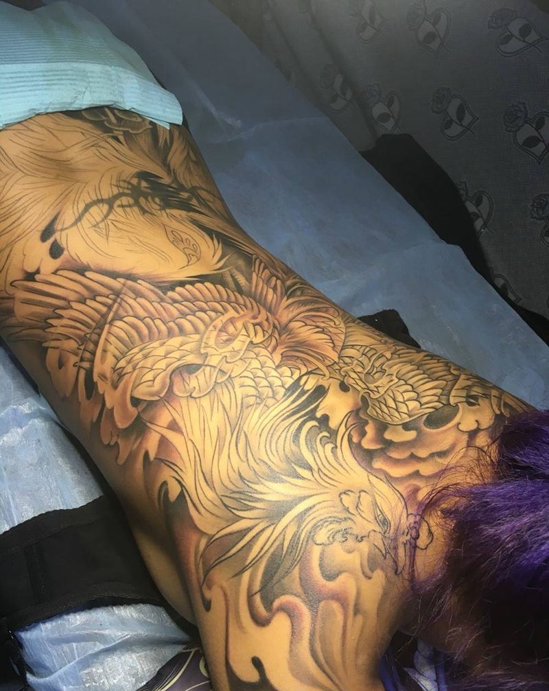 当前位置: 首页 >吉林省吉林市纹身店-纹绣堂刺青纹身图案>彩色凤凰进行中纹身图片