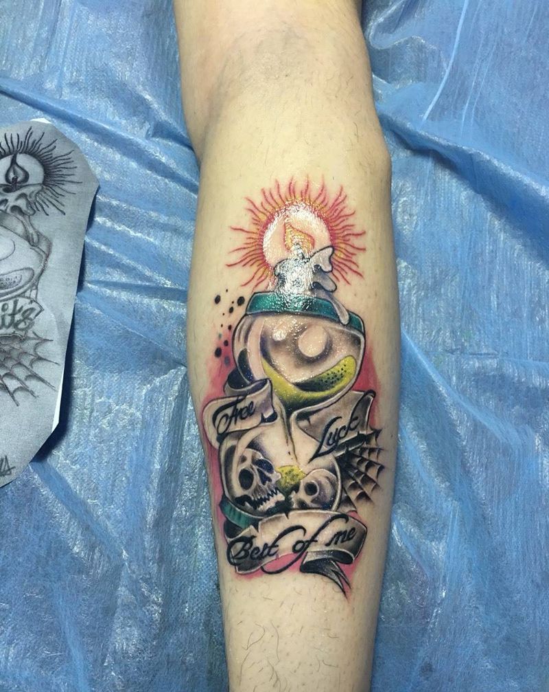 • T包小腿吹火男+阿多福纹身图片_腿部老传统新传统吹火男阿