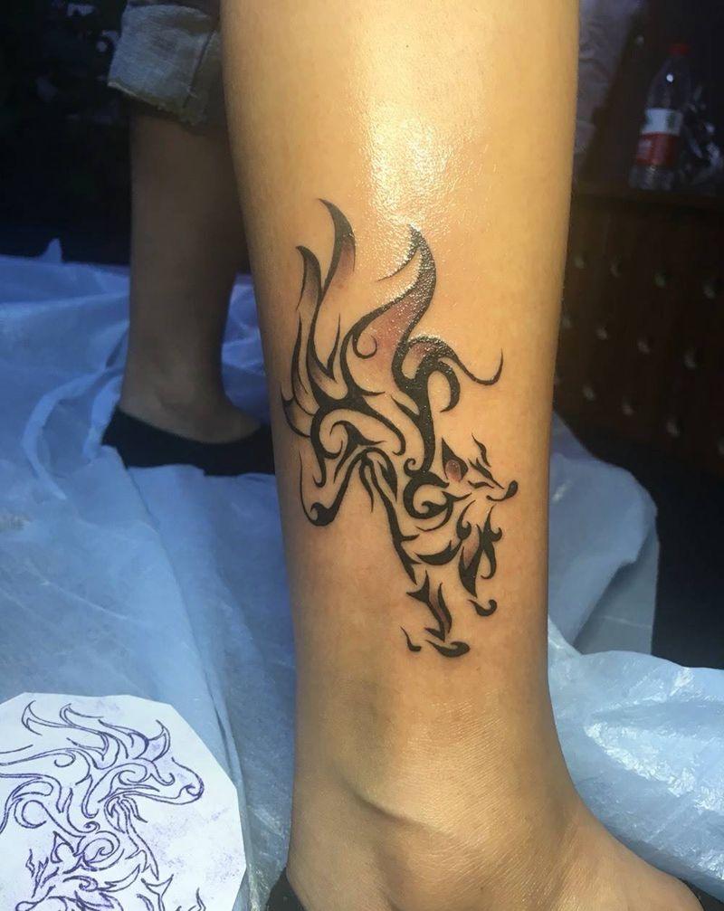当前位置: 首页 >吉林省吉林市纹身店-纹绣堂刺青纹身图案>九尾狐 抽象图腾风格纹身图片