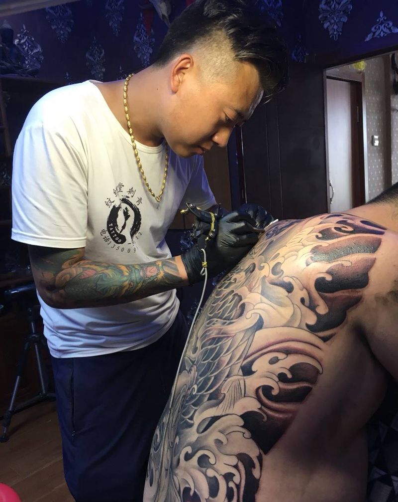 当前位置: 首页 >吉林省吉林市纹身店-纹绣堂刺青纹身图案>大鲤鱼纹身图片_成品背部传统动物纹身图案