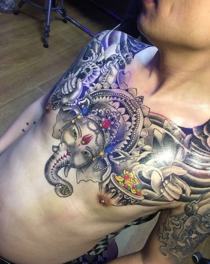 • 男性大花胸_42张优秀的男性大花胸纹身图案图片