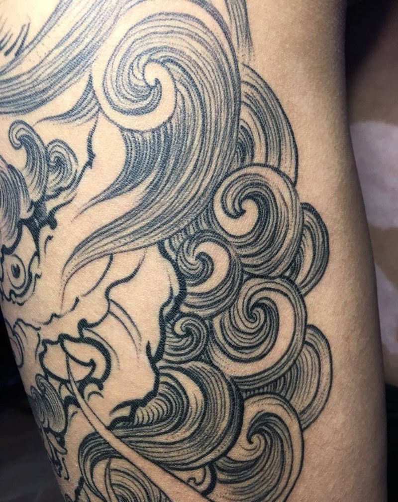 当前位置: 首页 >吉林省吉林市纹身店-纹绣堂刺青纹身图案>唐狮 线纹身图片
