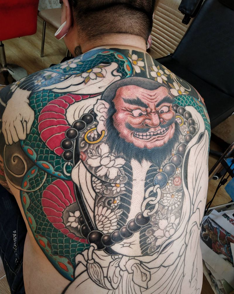 花和尚 未完纹身图片_背部新传统老传统纹身图案