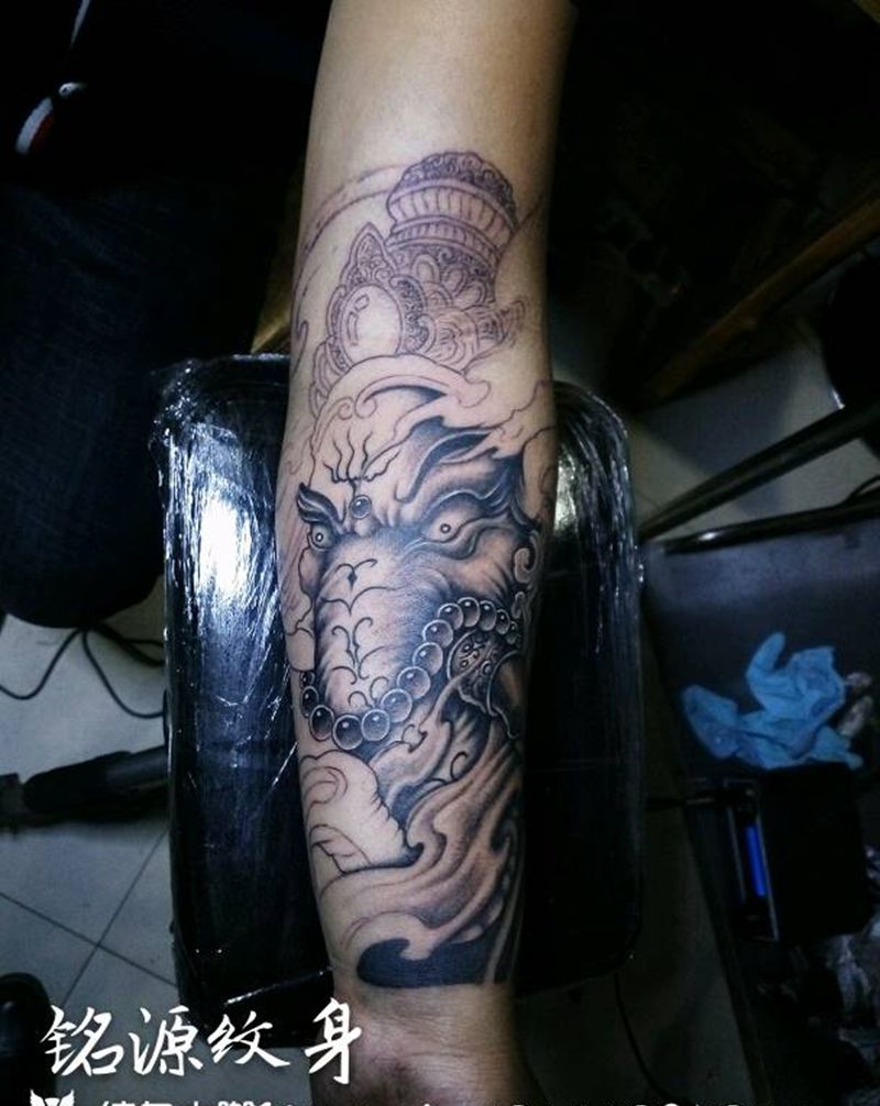当前位置: 首页 >吉林省松原市纹身店-铭源纹身纹身图案>花臂 象神加般若纹身图片