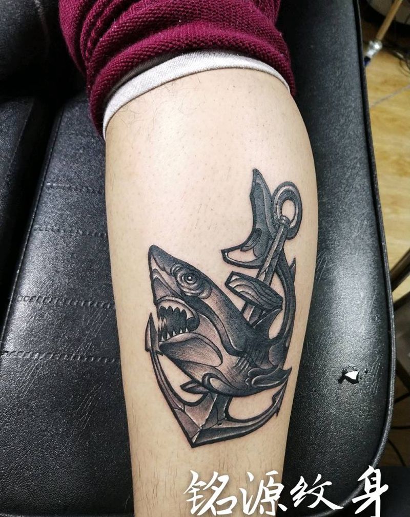 当前位置: 首页 >吉林省松原市纹身店-铭源纹身纹身图案>鲨鱼纹身图片_腿部几何图腾纹身图案