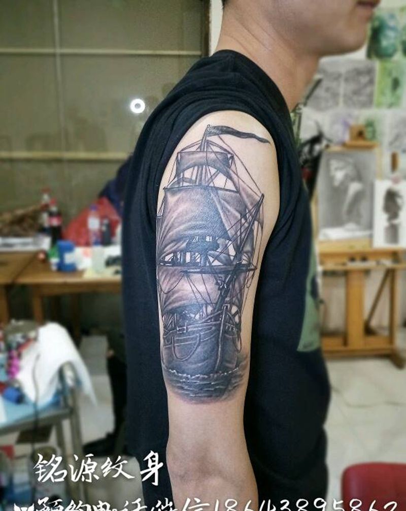 当前位置: 首页 >吉林省松原市纹身店-铭源纹身纹身图案>帆船纹身图片_手臂欧美写实成品纹身图案