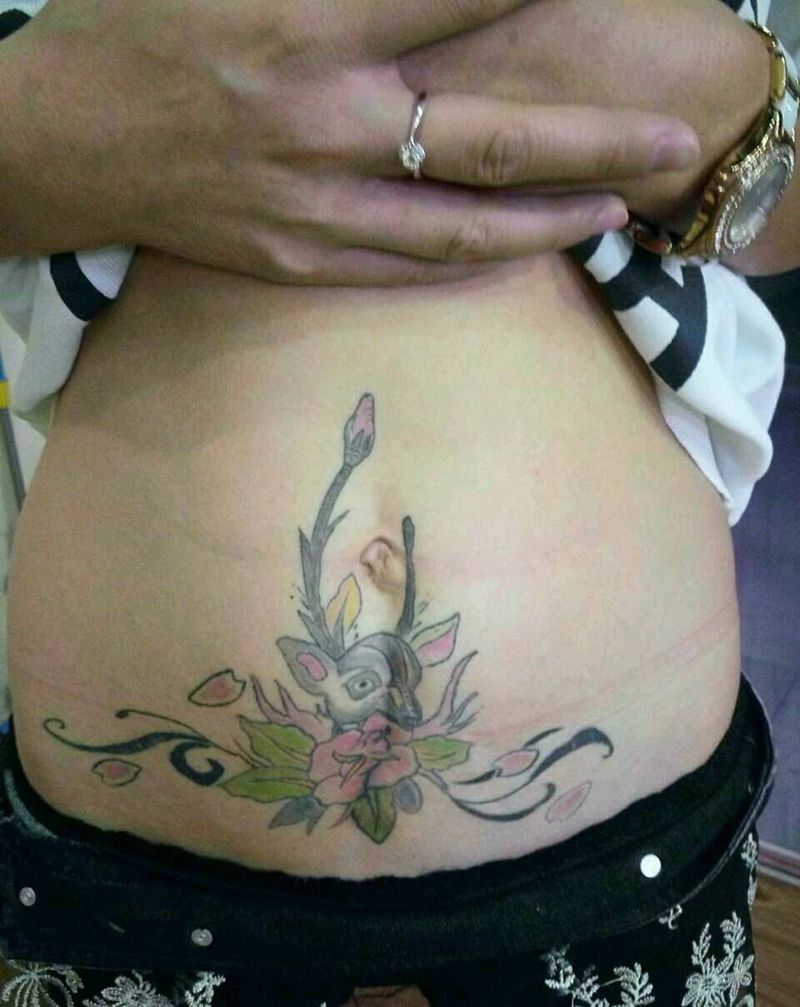• 时尚性感的腹部莲花纹身图案