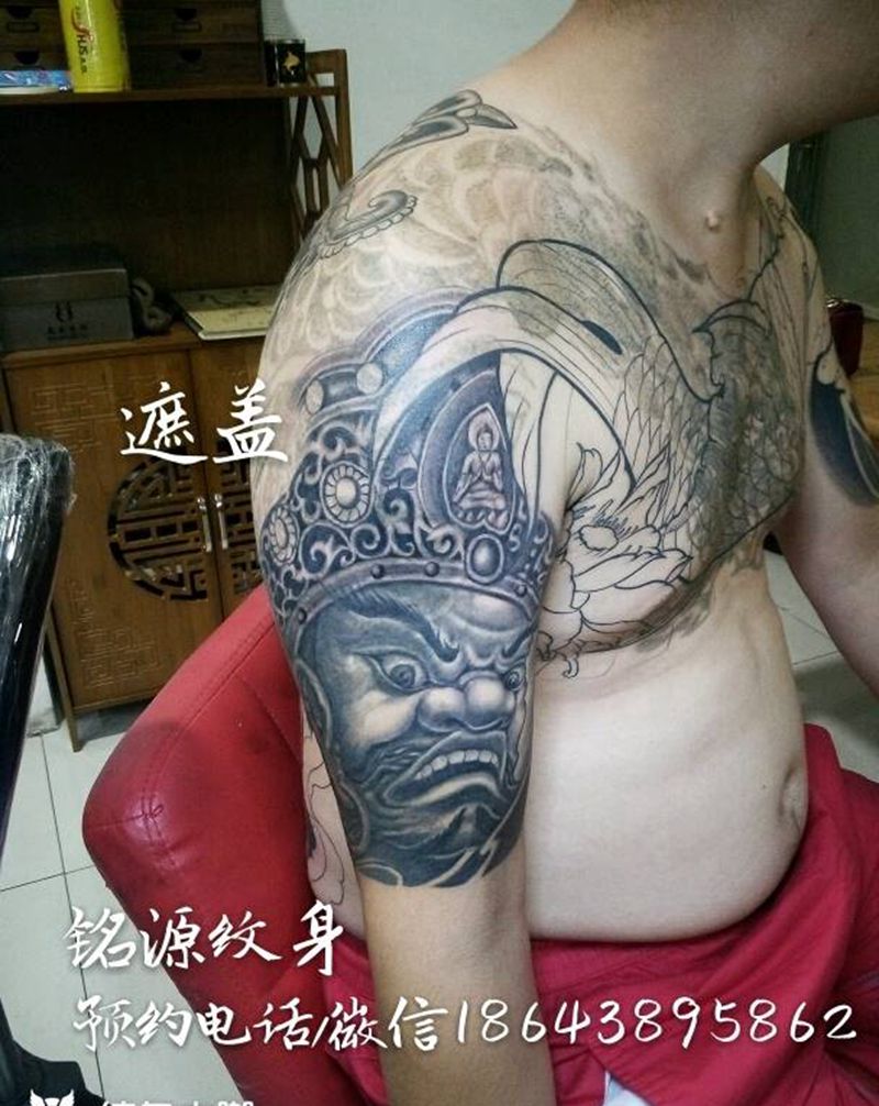 天王鲤鱼大黑天 遮盖纹身图片_传统纹身图案