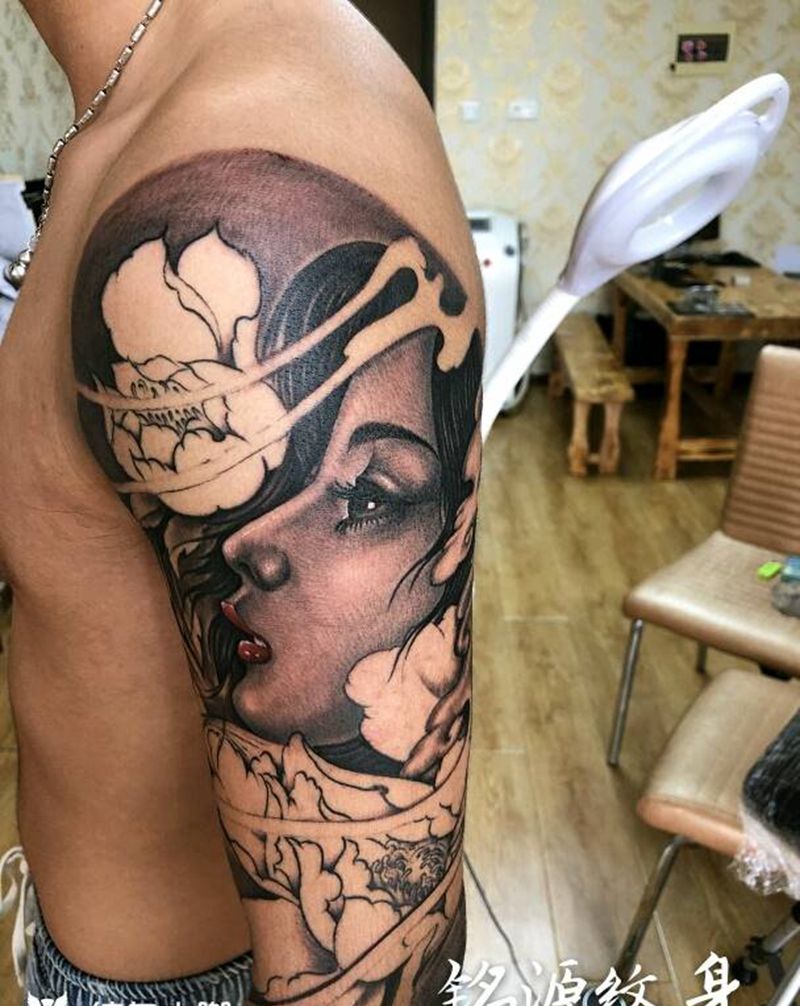 当前位置: 首页 >吉林省松原市纹身店-铭源纹身纹身图案>般若花臂纹身图片_手臂传统人物未完成纹身图案