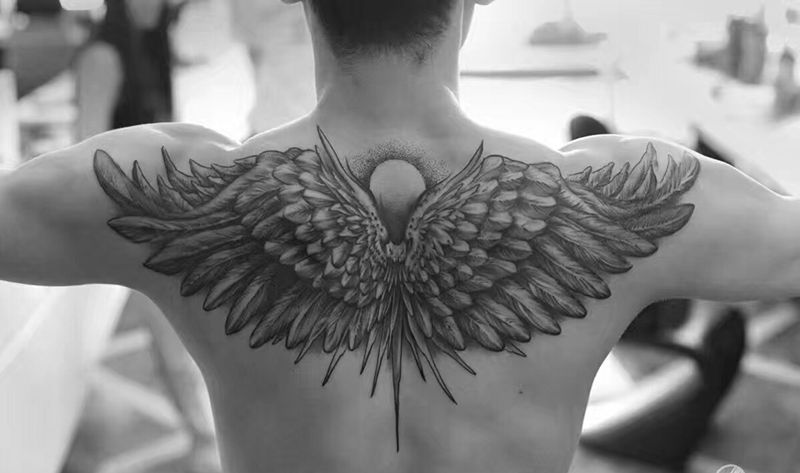 黑灰满背纹身图案