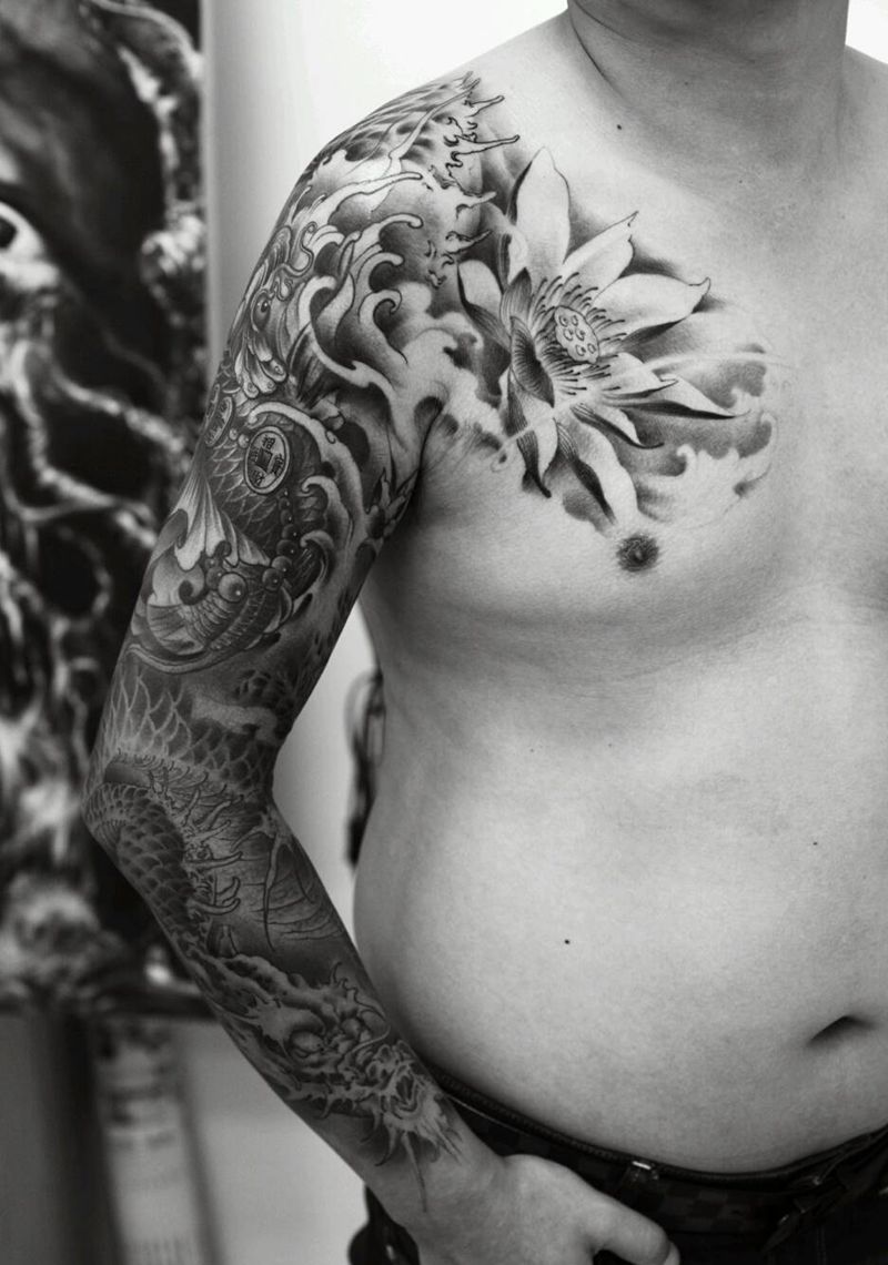 • 女性大花胸纹身_43张霸气漂亮的女性大花胸纹身图案作品