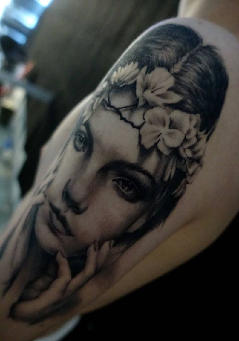 • 女性大花胸纹身_43张霸气漂亮的女性大花胸纹身图案作品