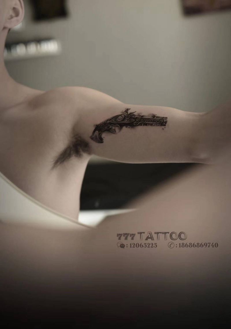当前位置: 首页 >黑龙江省哈尔滨市纹身店-叁柒社纹身图案>火铳纹身图片_手臂水墨纹身图案