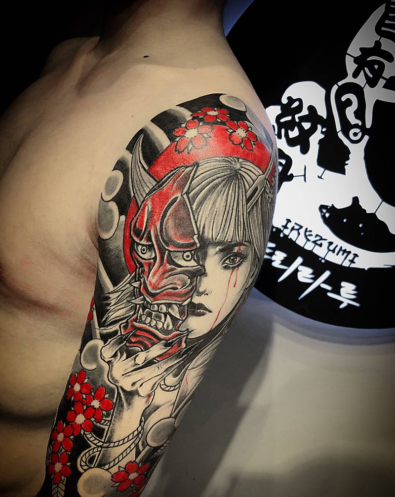 当前位置: 首页 >吉林省延边朝鲜族自治州纹身店-自有纹身纹身图案>艺妓花臂完成纹身图片_手臂纹身图案