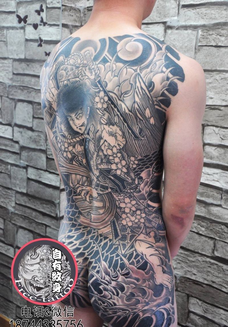 黑灰满背纹身图案