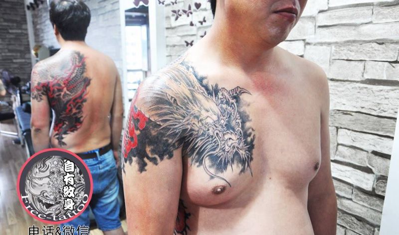 • 纹身吧推荐的披肩图腾半胛纹身图案作品展示