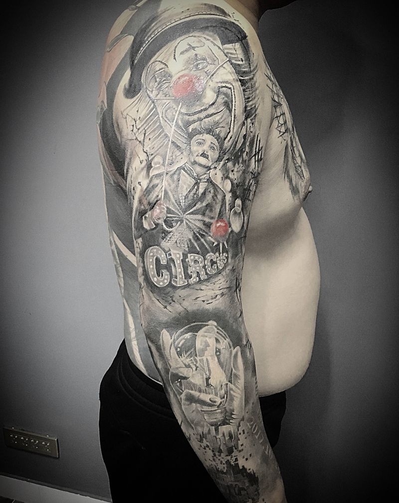 欧美花臂覆盖纹身图片_手臂欧美写实纹身图案