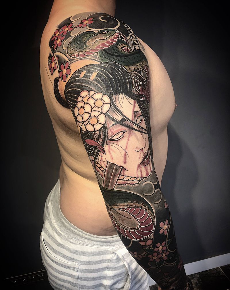 尸首➕青蛇➕般若纹身图片_手臂纹身图案