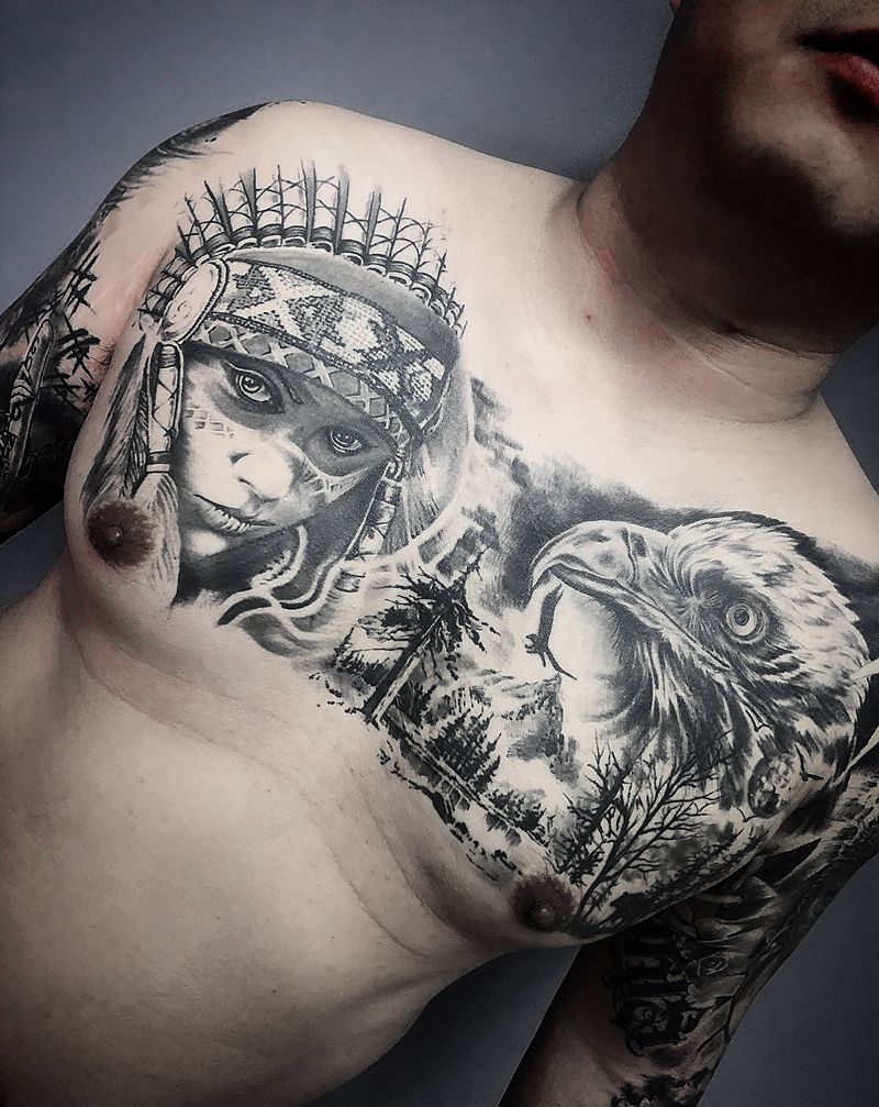 • 男性大花胸_42张优秀的男性大花胸纹身图案图片