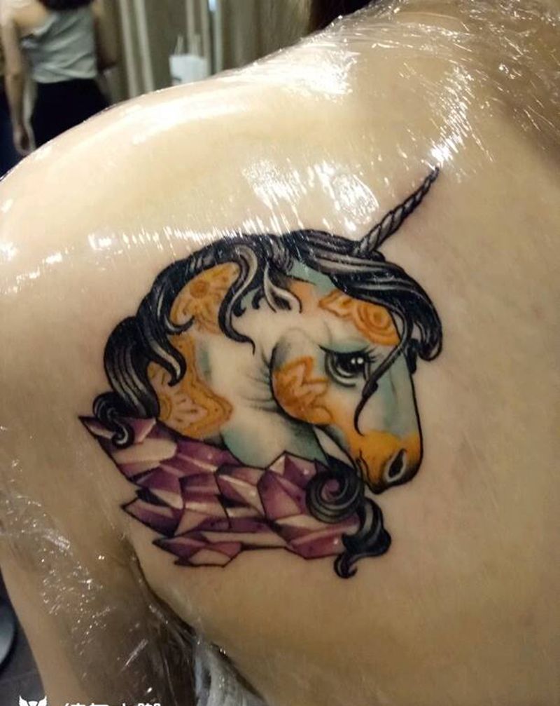 独角兽纹身图片_肩部动物成品纹身图案