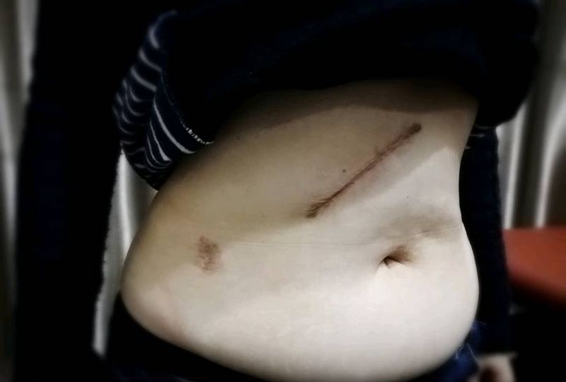 疤痕遮盖纹身图片_腹部传统国画植物原创水墨遮盖成品纹身图案