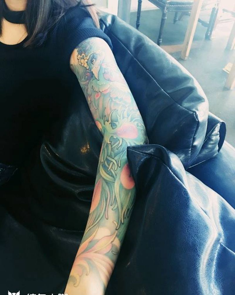 当前位置: 首页 >黑龙江省哈尔滨市纹身店-叁柒社纹身图案>花臂彩色孔雀买家秀纹身图片_手臂传统清新动物宗教原创花臂成品纹身图案
