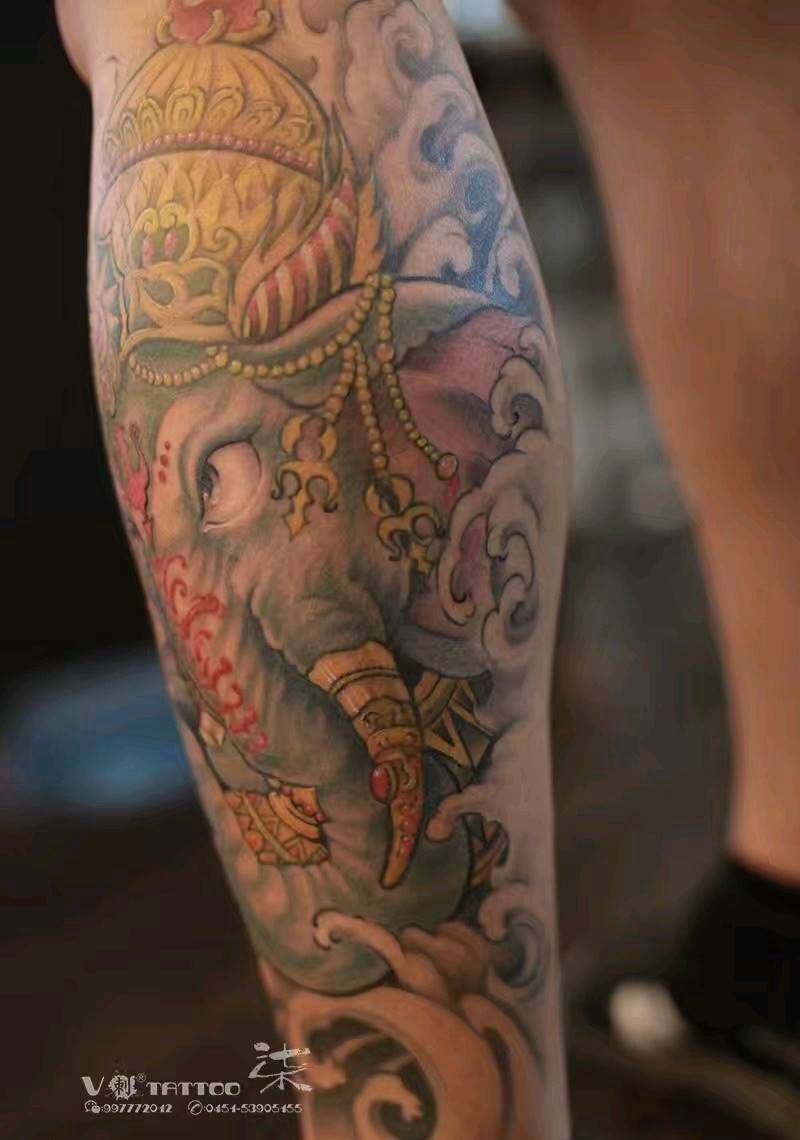 当前位置: 首页 >黑龙江省哈尔滨市纹身店-叁柒社纹身图案>象神纹身图片_腿部传统习俗动物人物鬼神宗教原创成品手稿纹身图案