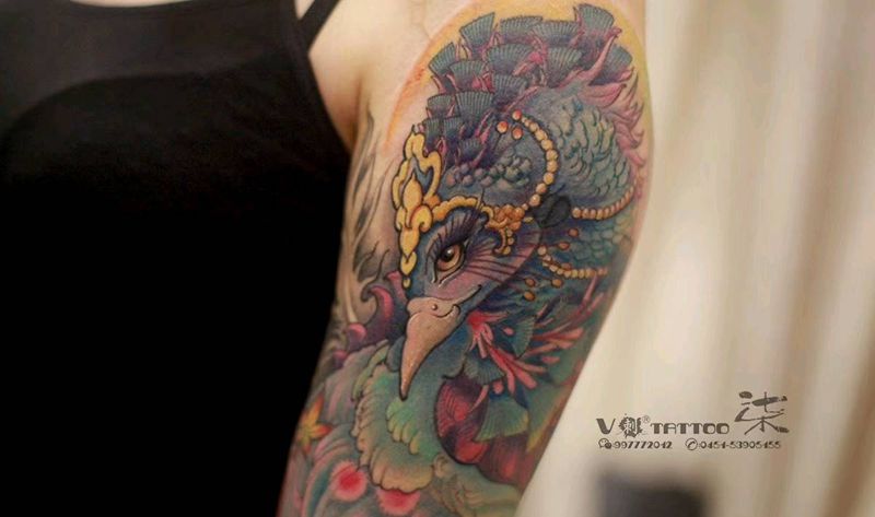 当前位置: 首页 >黑龙江省哈尔滨市纹身店-叁柒社纹身图案>花臂孔雀纹身图片_手臂传统动物原创花臂成品纹身图案