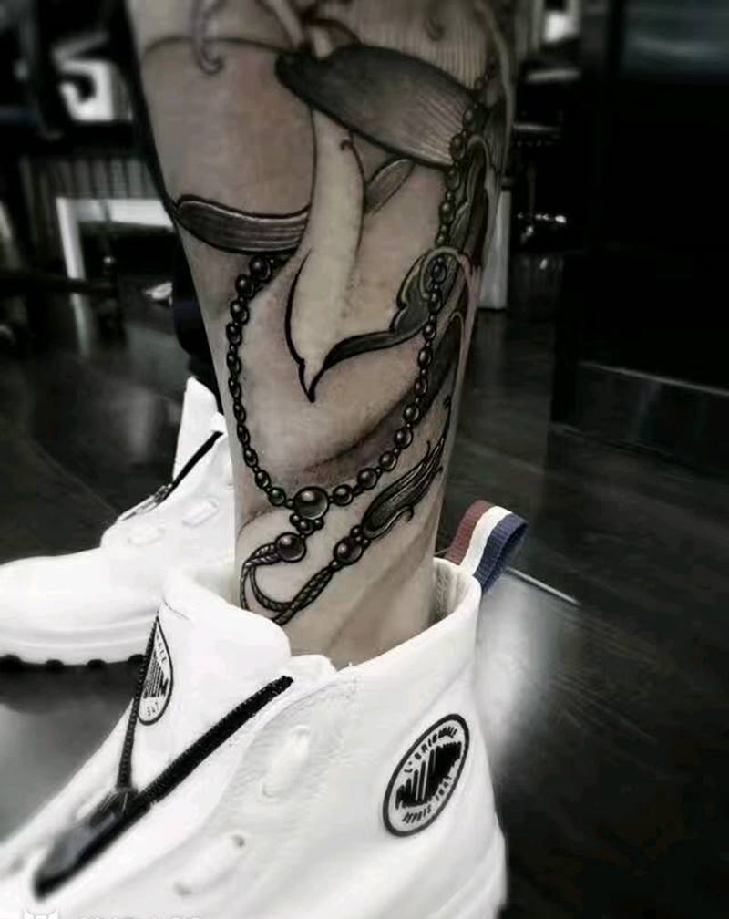 • T网红王老大花腿龙纹身图片_腿部新传统纹身图案