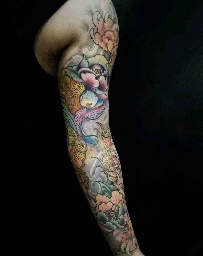 唐狮子花臂纹身图片_手臂手部传统习俗动物鬼神宗教原创花臂成品纹身图案