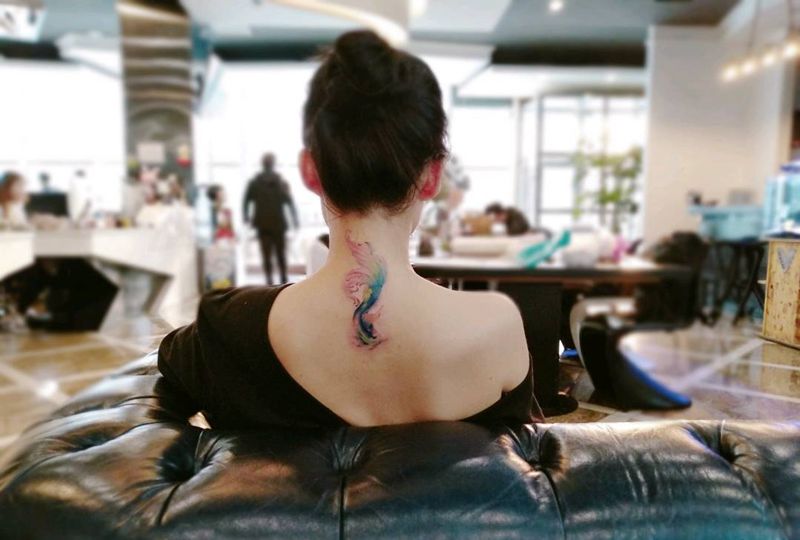 人鱼尾巴纹身图片_颈部背部欧美传统清新国画动物原创遮盖成品纹身图案