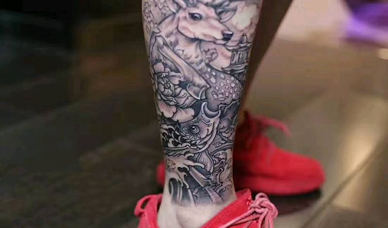 当前位置: 首页 >黑龙江省哈尔滨市纹身店-叁柒社纹身图案>鹿禄纹身图片_腿部传统动物原创黑灰成品纹身图案