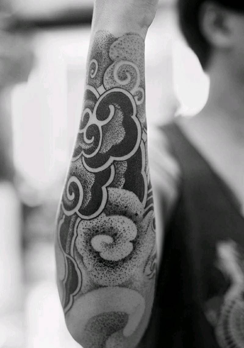 当前位置: 首页 >黑龙江省哈尔滨市纹身店-叁柒社纹身图案>祥云臂纹身图片_手臂几何图腾原创黑灰成品纹身图案