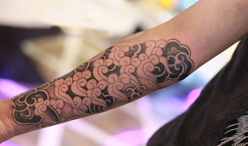 当前位置: 首页 >黑龙江省哈尔滨市纹身店-叁柒社纹身图案>祥云臂纹身图片_手臂几何图腾原创黑灰成品纹身图案