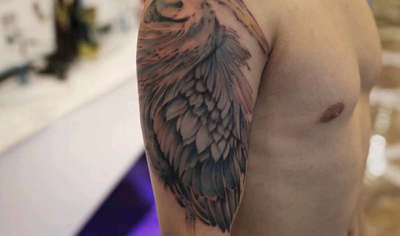 • 纹身吧推荐的披肩图腾半胛纹身图案作品展示