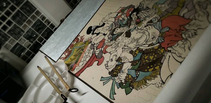 当前位置: 首页 >黑龙江省哈尔滨市纹身店-叁柒社纹身图案>太郎捉鬼纹身图片_背部新传统水墨人物鬼怪手稿纹身图案