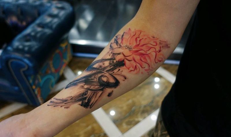 当前位置: 首页 >黑龙江省哈尔滨市纹身店-叁柒社纹身图案>水墨纹身图片_手臂水墨水彩莲花纹身图案