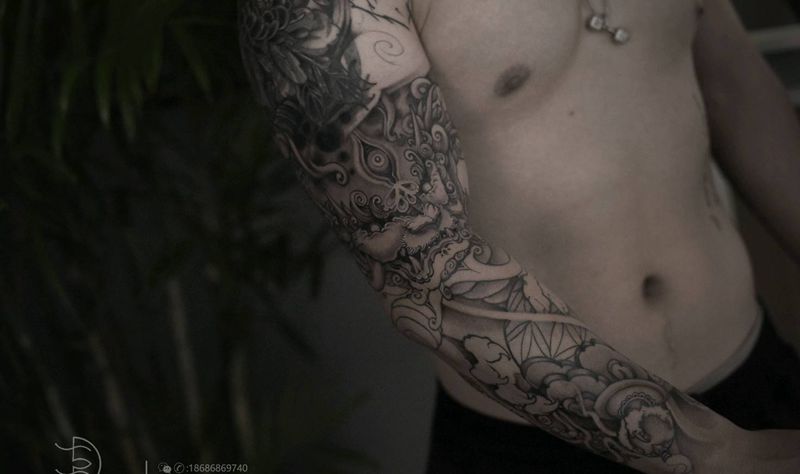 当前位置: 首页 >黑龙江省哈尔滨市纹身店-叁柒社纹身图案>未完唐狮纹身图片_手臂新传统唐狮纹身图案
