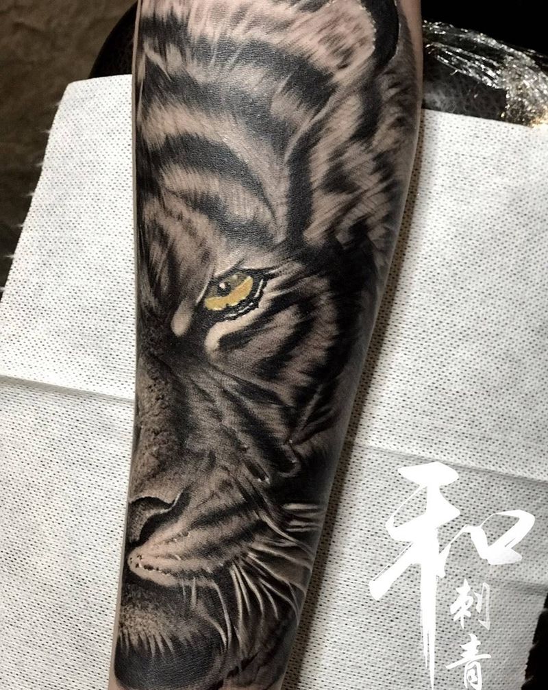 当前位置: 首页 >吉林省延边朝鲜族自治州纹身店-铭刻刺青纹身图案>老虎纹身图片_手臂脚部新传统老虎纹身图案