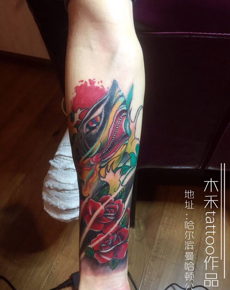 当前位置: 首页 >黑龙江省哈尔滨市纹身店-木禾 tattoo纹身纹身图案>鲨鱼与玫瑰纹身图片