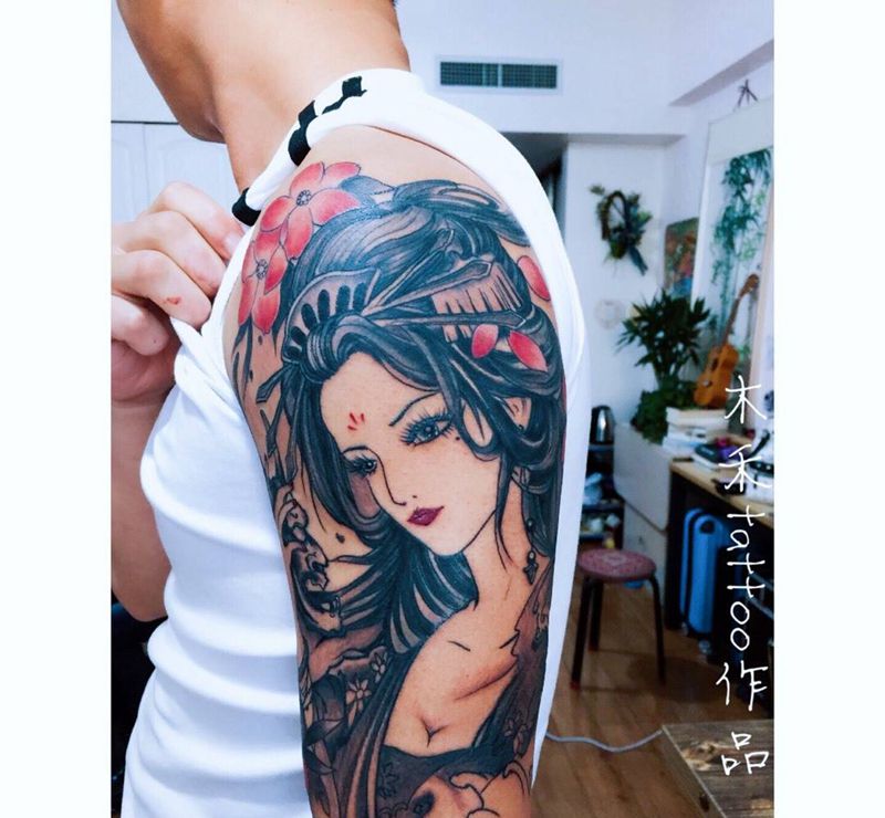 当前位置: 首页 >黑龙江省哈尔滨市纹身店-木禾 tattoo纹身纹身图案>艺妓美女纹身图片