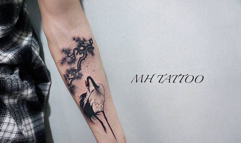 当前位置: 首页 >黑龙江省哈尔滨市纹身店-木禾 tattoo纹身纹身图案>仙鹤纹身图片_手臂腿部纹身图案