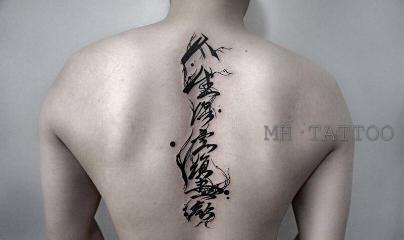 黑灰满背纹身图案